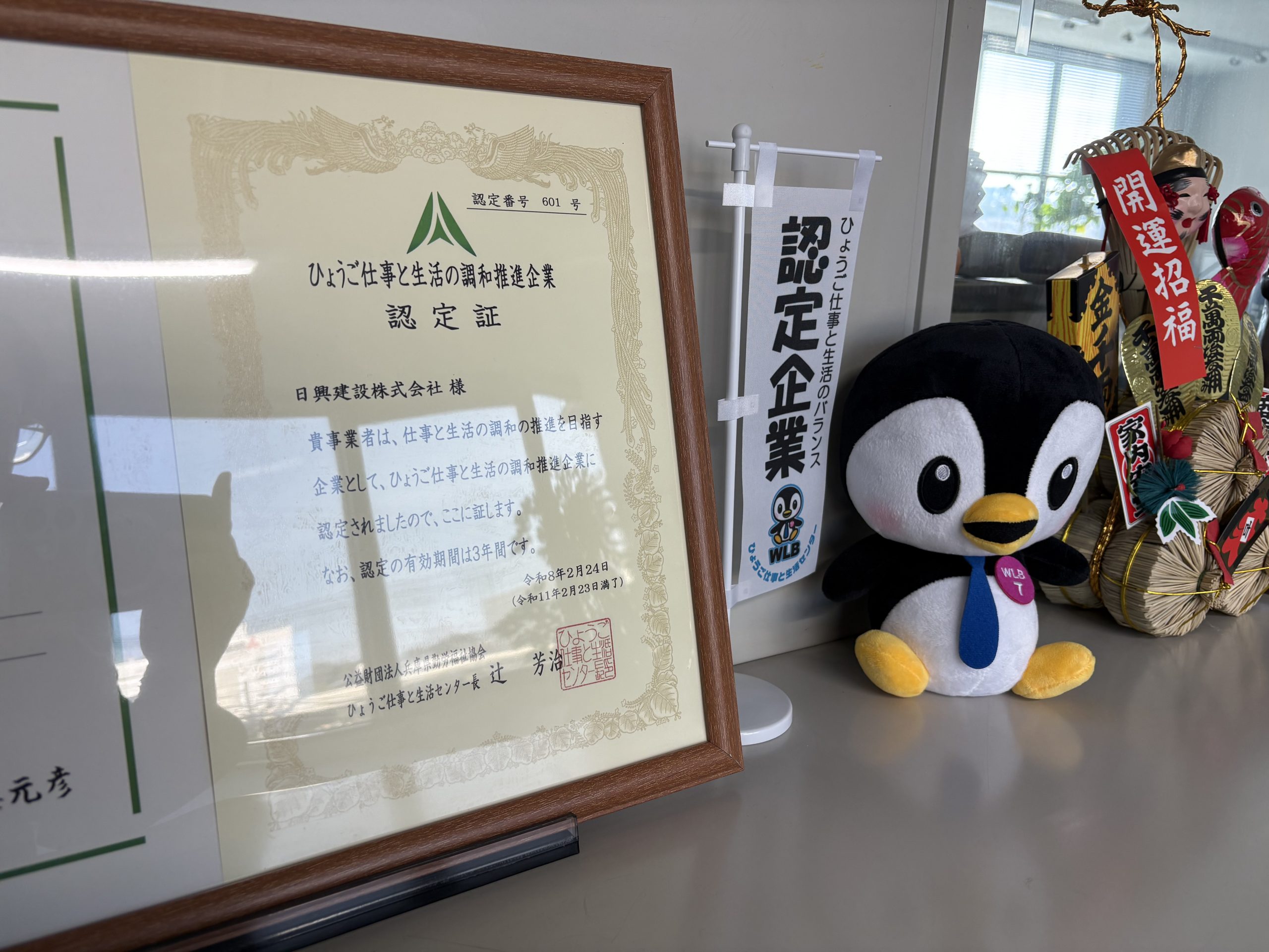 令和6年1月9日に、ひょうご仕事と生活の調和推進宣言企業として登録。